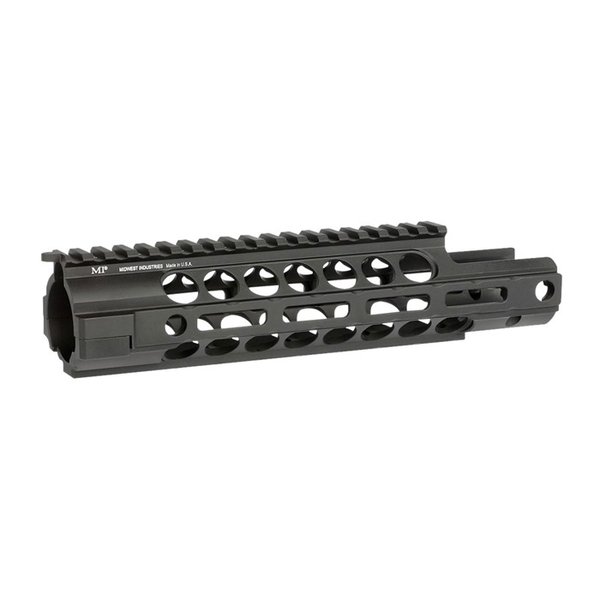 - The handguard features a monolithic type continuous top rail and five anti-rotation QD sockets for push button swivels.