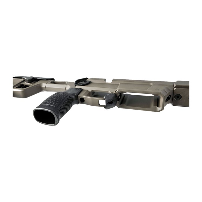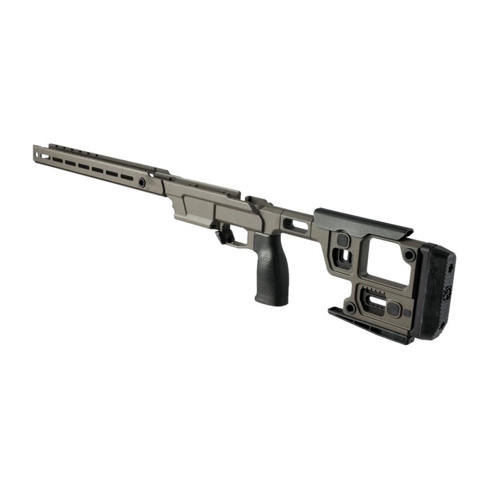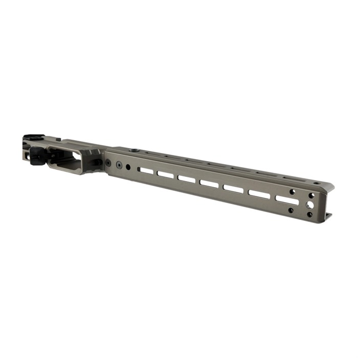 - Constructed from 7075-T6 aluminum, the chassis is durable yet lightweight at 4.28 lbs, and it comes in O.D. Green Cerakote with a 15" fixed assembly.