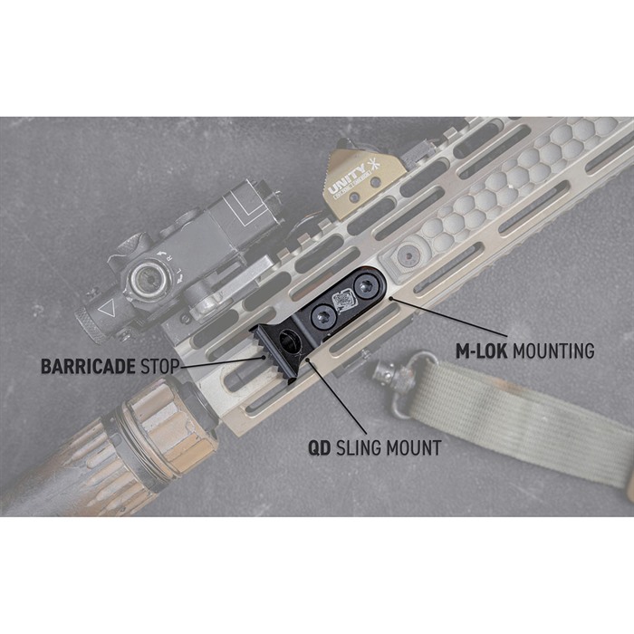 676821274380 The Sons Of Liberty Gunworks Presscheck Barricade Stop is a precision-engineered MLOK accessory that achieves two functions in the same footprint; it serves as a Barricade Stop and a QD Sling Mount. The flush mounting and compact design allow the shooter greater ease of movement and quick transitions between various shooting positions while preserving valuable space on the handguard. These are 100% USA-made from high-quality steel materials providing resilience from impact, heat, and harsh weather conditions.Delivery time approx. 7-14 days.