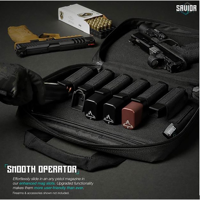 - Designed for professionals, the Savior Equipment SPECIALIST SOFT PISTOL CASE features a unique front panel and is packed with features to organize range day accessories, including cushioned compartments and enhanced knitted elastic mag slots.