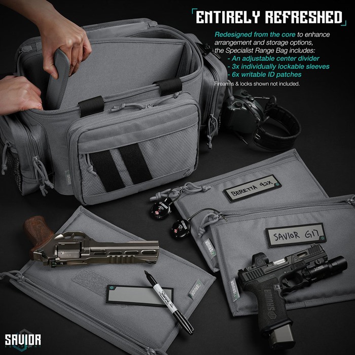 Refreshed from inside and out, Savior's range bag has been overhauled to be even more functional. It's specifically tested for professionals like you, with features tailored to hold everything you'll need at the range.