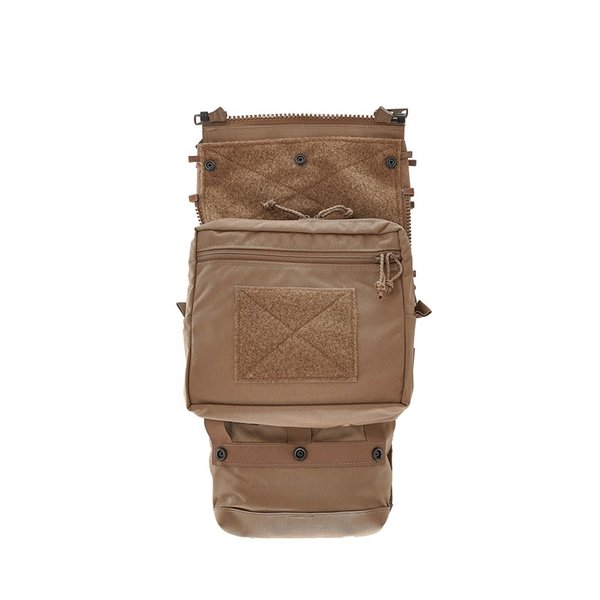 - Configuration 1: Attaches to the plate bag using top zippers for a "light" setup, ideal for carrying essentials like a small hydration bladder and slap charges.