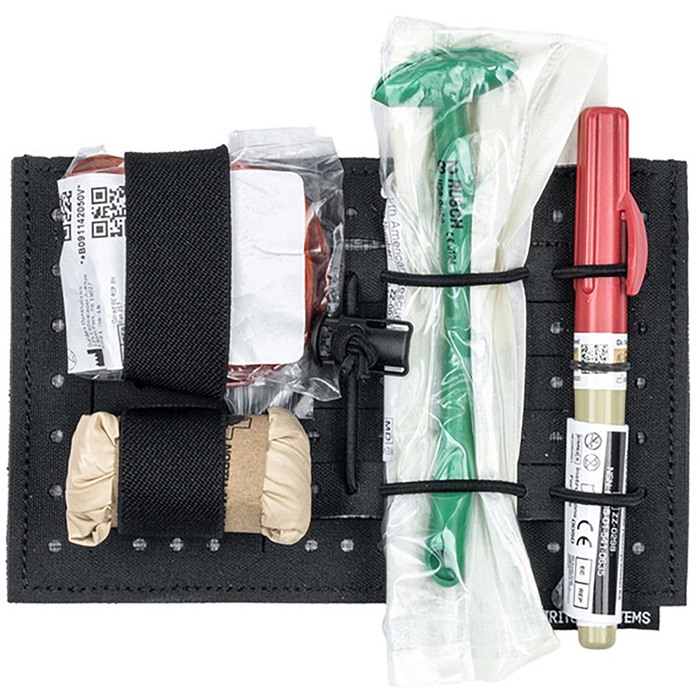 The Spiritus Systems Configurable Med Tray Mk2 is a modular insert board with a hook field backing and a removable rigid Tegris insert that allows you efficiently organize and secure small items in a pouch. The Med Tray Mk2 now incorporates configurable barbed elastic straps so the end user has additional options for modular item retention. The Configurable Med Tray is built with a laser cut face that features both dot grid and MOLLE mounting options. Layout of the tray is entirely up to you and can be assembled to hold nearly anything with the included barbed elastic straps, shock cord and cord locks. The tray is sized to mount to the inside of many Spiritus Systems pouches, including the GP Medium, JSTA Pouch, Mutant Pouch, GP Tall, GP Wide, and SACK pouches. Once configured, the hook backing in the tray will keep your kit locked down to the inside wall of the pouch, mitigating unwanted noise from items that jostle during movement, and reducing the time it takes to find what you need under stress. The Tegris backer sleeve can also be used to store flat items like bandages, notes, and other thin equipment. The Configurable Med Tray Insert measures 7" wide x 4.5" tall and comes with 4 cord locks and 4’ of shock cord that can be cut to length. Some images shown with optional accessories, sold separately.Delivery time approx. 7-14 days.