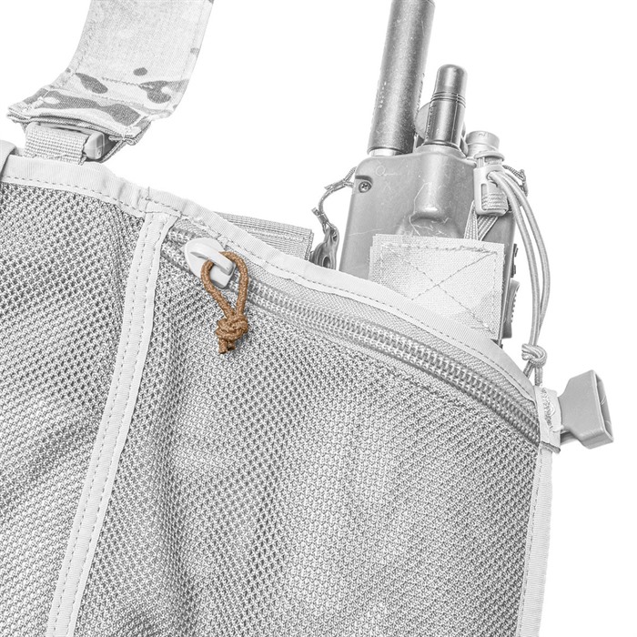 - Radio Bungee Retention Kit: Includes four radio bungee retention tabs for mounting on the outer pockets of the Tactical Assault Panel, featuring barrel locks for tension adjustment.