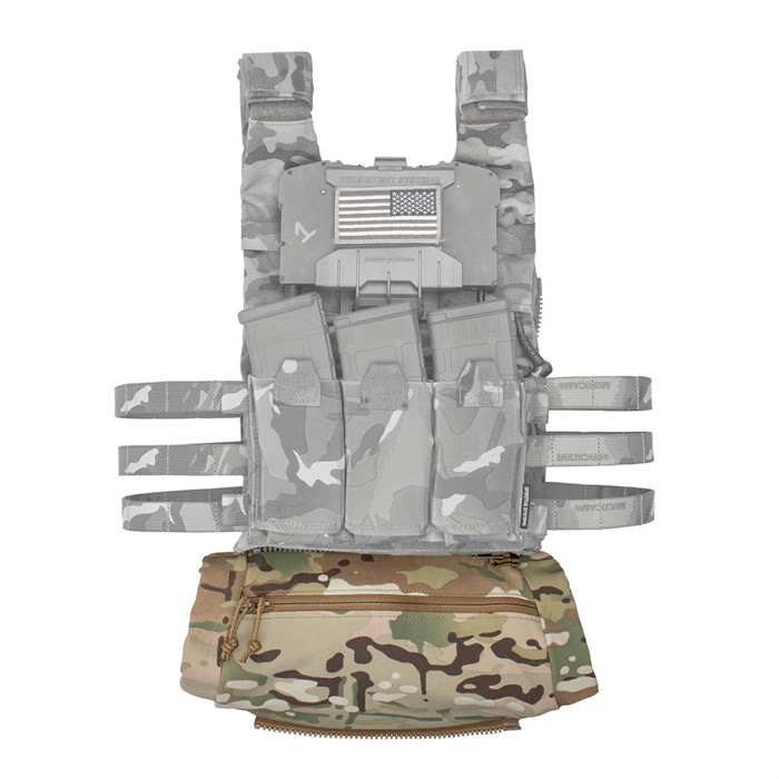 - Can be mounted to the bottom of a Spiritus Systems plate carrier or chest rig system using the integrated hook & loop tab.
