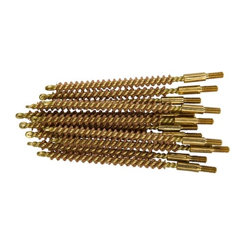 050806031685 Since darn near as many bore brushes get used in the shop as get sold, we’ve packed these custom-made, top quality brushes in bulk paks to make them more convenient and less expensive. The shank is one-piece, looped and wound (not two, twisted together and chopped off). Bronze Bore Brushes - Best phosphor bronze scrubbing wire, for long life, thorough cleaning. SPECS: Bristles: Available in bronze. Shank: Steel, looped and wound. Rifle: 3.26” (8.3cm) OAL, .17 and.20 caliber 5-40 threads, all others 8-32 thread.Delivery time approx. 7-14 days.