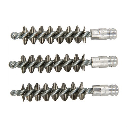050806027718 Since darn near as many bore brushes get used in the shop as get sold, we’ve packed these custom-made, top quality brushes in bulk paks to make them more convenient and less expensive. The shank is one-piece, looped and wound (not two, twisted together and chopped off). Stainless Steel Bore Brush - For severely leaded, fouled or rusted bores, the aggressive cleaning action of a stainless steel brush can help get them clean. However, the aggressive action accelerates wear, and regular use can shorten barrel life. SPECS: Bristles: Available in stainless steel. Shank: Steel, looped and wound. Overall length: 2-7/8" (7.3cm) Threads: 5/16"-27 maleDelivery time approx. 7-14 days.
