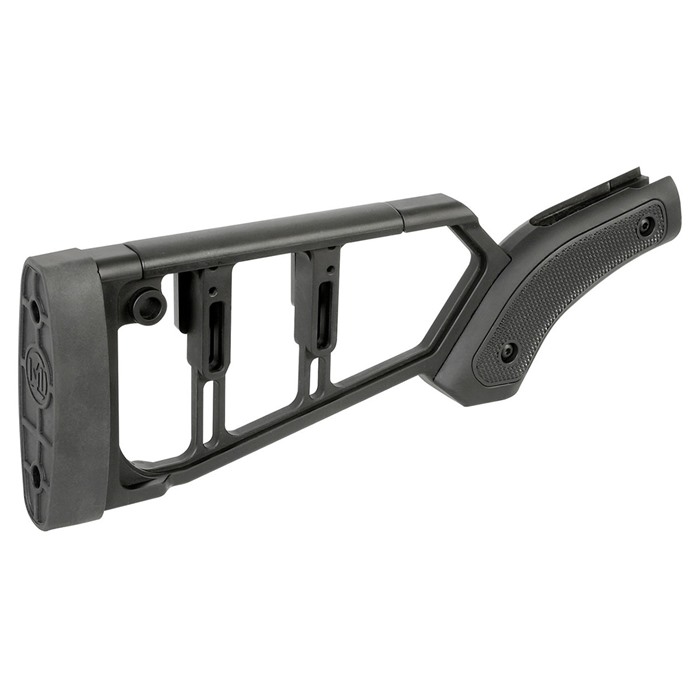 - Polymer cheek piece offers adjustability for use with iron sights, red dots, or magnified optics