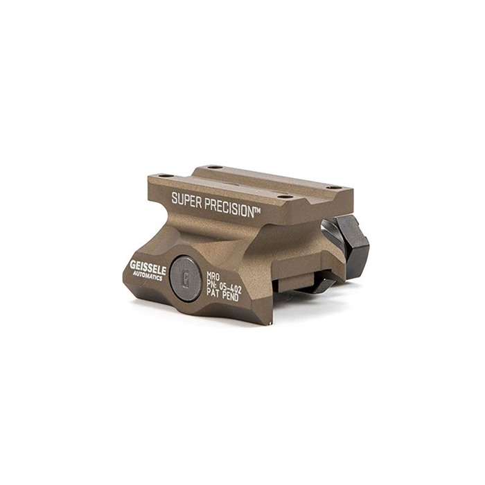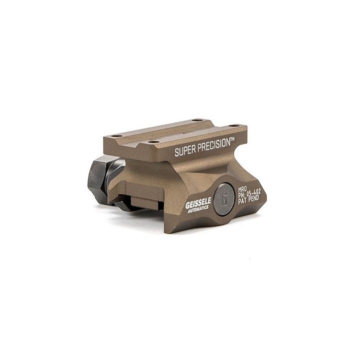817953020739 The Super Precision MRO Series was developed specifically to work with the Trijicon MRO and like mounted red dot optics. These mounts are precision machined from a single piece of 7075-T6 high strength aluminum and are available in both co-witness and lower third co-witness options. Utilizing Geissele’s update of the classic nut and bolt method, this mount will attach your red dot to your weapon with 1,400 pounds of clamping force, and features 3 shear lugs for maximum rigidity and return to zero.Delivery time approx. 7-14 days.