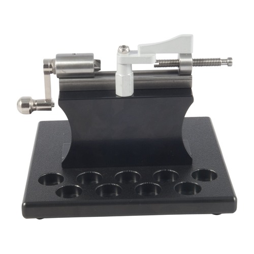 The L.E. Wilson Case Trimmer and Sinclair Mounting Stand with “SharkFin” Case Holder Clamp (order case holders separately.) This mounting stand and clamping attachment make case trimming much quicker and comfortable. The “SharkFin” Case Holder Clamp swings quickly into place and provides downward pressure on the case holder while trimming. This Kit also includes the Sinclair Trimmer Platform. The platform allows for portable and stable use of the L.E. Wilson trimmer. It has 9 slots for additional case holders as well as a tapping block for knocking the cases in and out of the holder. Platform comes with rubber feet and can be used by itself or C-clamped to the bench for added stability.Backorderable, delivery time approx. 4-12 weeks from the USA warehouse.