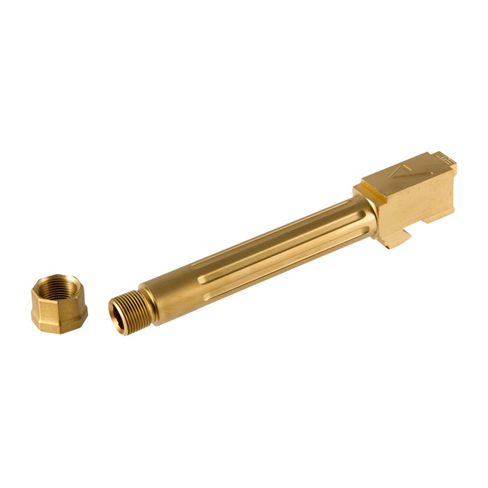 - The barrel has a Titanium Nitride Finish and machined gear flutes for improved cooling during high-volume shooting.