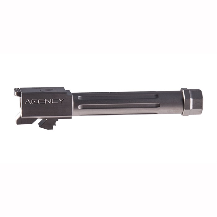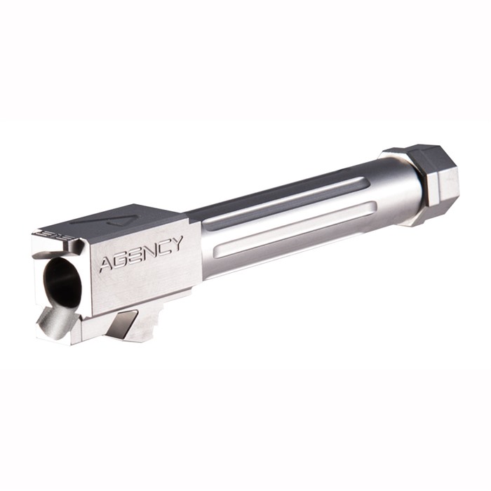 - The Agency Arms Threaded Mid Line Barrel for Glock G19 is constructed from 416R stainless steel, enhancing durability and corrosion resistance.
