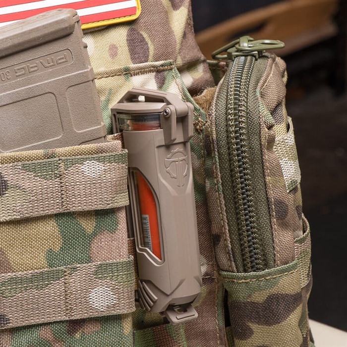 765855322287 CELLVAULT-21 BATTERY STORAGE FOR 21700 AND STREAMLIGHT SL-B50 Protect your spare 21700 battery while keeping it immediately accessible with the CellVault-21 Rechargeable Battery Storage. Premium batteries require protection from physical and environmental damage but need to remain accessible to keep advanced tactical lights running at full power. The CellVault-21 Rechargeable Battery Storage provides the same feature set as our popular CellVault-18 including dual-wall construction & side viewing windows but adds a larger capacity and an upgraded latch that allows for easy installation, especially on tight MOLLE/PALS webbing. FEATURES: Holds one 21700 Rechargeable Battery Holds one Streamlight SL-B50 Battery (with foam removed) Waterproof O-ring seal rated to IPX7 at 2 meters for 30+ minutes Secure metal latch seals and attaches the CellVault-21 to gear Silicone foam shock absorber/noise silencer Clear side windows allow for gear status checks Slim profile: less than 1 MOLLE/PALS column wide for easy integration into existing gear configurations Detachable latch installs easily on all MOLLE and can be backed up with the included security pin Designed and manufactured in the USA INSTALLATION: Unlock the bottom latch and open the CellVault-21. Press the release tab with a screwdriver or similar tool to release the latch from the back strap. Insert the back strap through the MOLLE/PALS webbing. Align the side tabs and snap the latch back into the back strap. Install additional security pin through both the latch and back strap if necessary. Verify foam shock absorber is at the bottom of the CellVault-21 tube. Insert battery with the positive (+) terminal towards the foam at the bottom. Close the latch, making sure no material is caught in the tube/cap interface.Delivery time approx. 7-14 days.