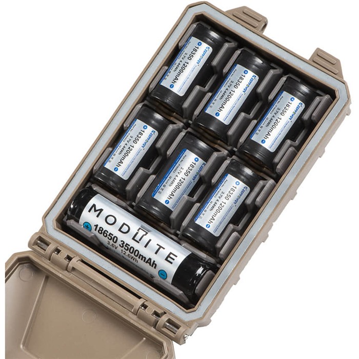 765855322201 MODULAR BATTERY INSERT PAK FOR CELLVAULT-5M Additional modular inserts to run almost any combination of batteries in the CellVault-5M Modular Battery Storage Case. Thyrm makes inserts for AA, AAA, CR123/16650, 18350, 18650, and 1632 batteries. When you combine extra Modular Insert Pak inserts with those that come with the CellVault-5M Modular Battery Storage Case, the possibilities are almost endless. Need to run ten CR123s? You can do that. How about four 18650s and two CR123s? Yup. You can also keep batteries staged outside the CellVault-5M and quickly swap them into the case to match your mission. The CellVault-5M Modular Battery Storage Case is not included when you buy any Insert Pak. Thyrm does not include batteries in any purchased products.Delivery time approx. 7-14 days.
