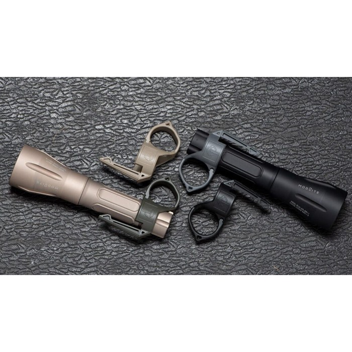 765855322218 SWITCHBACK HOG FLASHLIGHT RING FOR MODLITE HOG FLASHLIGHTS The SwitchBack® HOG adds a multi-function finger ring and robust pocket clip to Modlite’s HOG Flashlight. It mounts securely on the light’s tailcap, providing a repeatable grip index during deployment from pocket or pouch, and enhances ergonomics while shooting or searching. Featuring the same enhanced features as the SwitchBack® 2.0, the SwitchBack HOG Flashlight Ring is the ergonomic upgrade your Modlite HOG tactical flashlight deserves! FEATURES: Like all our SwitchBacks, it can be used with handguns or long guns, allowing the user to: Reliably deploy and index a flashlight from both pockets and pouches, using the SwitchBack’s rigid, but releasable, retention ring. Employ all traditional low-light techniques such as Neck Index, Modified FBI, and Harries. Positively retain the light when drawing a firearm, reloading, and addressing a malfunction. The SwitchBack HOG Flashlight Ring also provides fast deployment and enhanced retention during many activities such as climbing, backpacking, car and home maintenance, and self-defense. If you’re using the Modlite HOG as a patrol light, improve your access and mounting ability with a SwitchBack HOG! A finger ring that releases under heavy force/torque but can be reset. A strong pocket clip that also works with MOLLE/PALS webbing. A wide thumb rest with traction features. Small crush ribs on the SwitchBack HOG’s lip create a custom fit. Designed and manufactured in the USA. INSTALLATION Installation is simple: Remove the tailcap of the Modlite HOG, place the SwitchBack HOG, then re-screw on the tailcap. If you would like a tighter fit, an O-ring comes with the SwitchBack HOG and can be placed on the last step past the threads, as shown to the right; it is a #018 Buna-N O-ring (1/16″ thick, 7/8″ OD, 3/4″ ID).Delivery time approx. 7-14 days.
