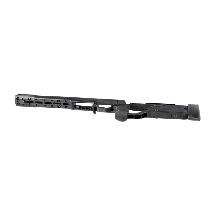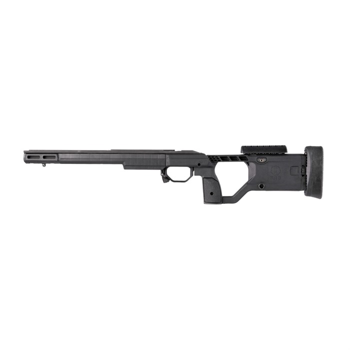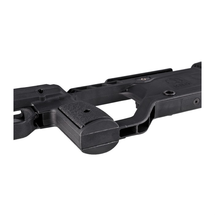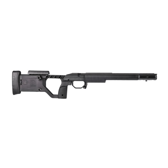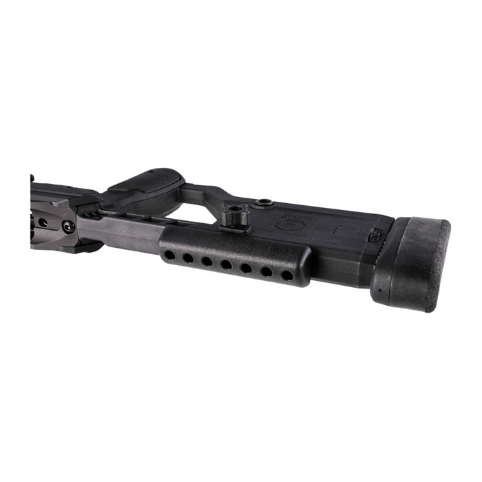 - Tool-less Adjustments: New one-piece backend features tool-less buttpad height and cant adjustments, along with an ambidextrous cheekpiece thumbscrew.