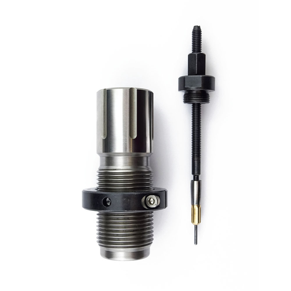 2. All components such as spindles, expander, and ejector pin are easily replaceable, and the die provides correct neck tension by calibrating the case neck from the inside.
