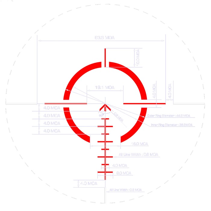 - Features a Trident reticle for fast target acquisition and a reticle illumination option in red or green with "Shake 'N Wake" technology.