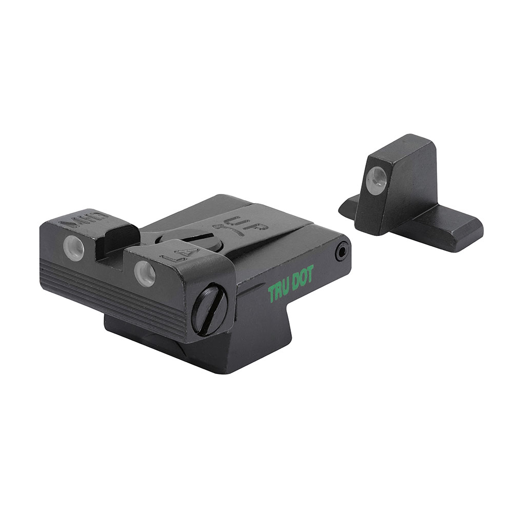 - TRU-DOT® Technology: Adjustable models provide a handgun sighting system for improved rapid instinctive aiming, requiring no transition from day to night use. The shooter’s aiming reference remains consistent with three solid dots, identical in appearance and location under all light conditions.