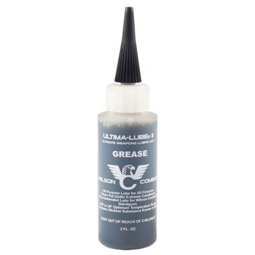 The WILSON COMBAT ULTIMA-LUBE II GREASE is a premium light grease designed for optimal performance and longevity. This 2 oz. (59ml) bottle of grease is perfect for ensuring that the critical areas of your firearm remain lubricated without the risk of migration to other parts.