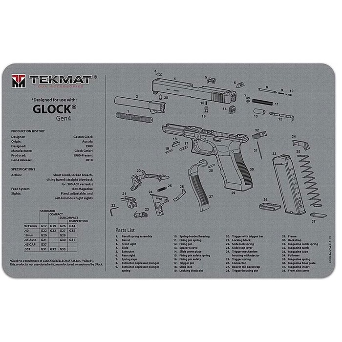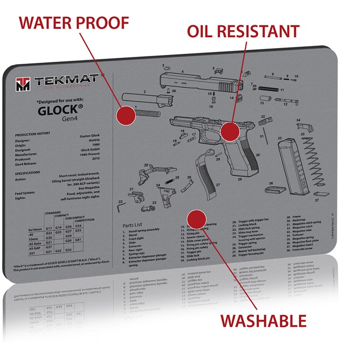 The TekMat Ultra 20 Pistol Cleaning Mat is available for various models, including: