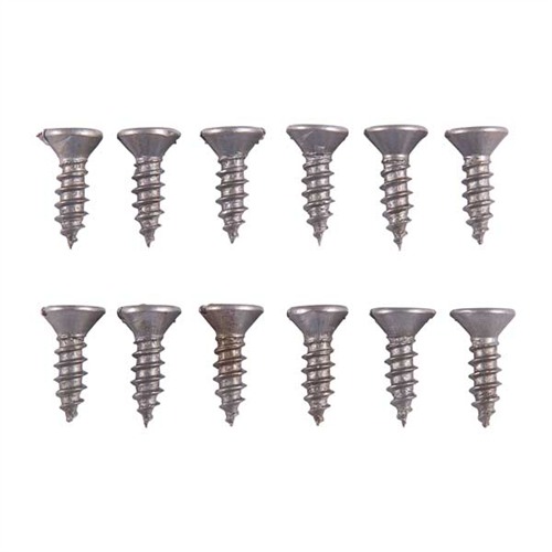 Introducing the UNPLATED STEEL FLAT HEAD WOOD SCREW KIT from BROWNELLS. This kit includes 12 steel flat head wood screws, each measuring 6x1/2" and finished in a blued coating.
