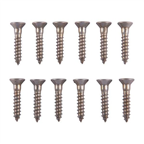 Introducing the UNPLATED STEEL FLAT HEAD WOOD SCREW KIT from BROWNELLS, featuring 6x3/4" steel flat head wood screws that are blued and come in a convenient 12-pack.
