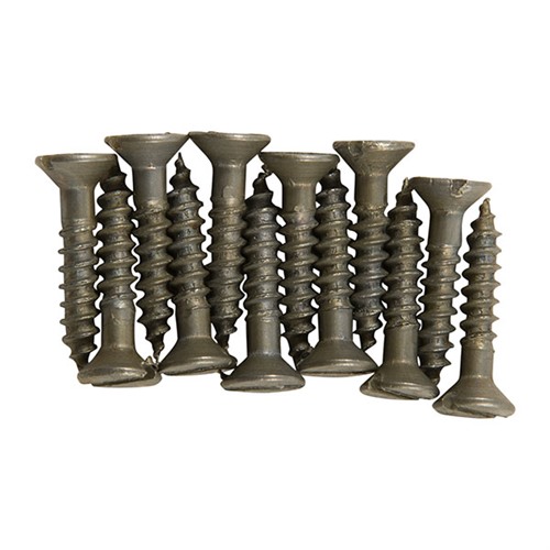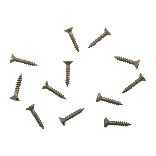 Introducing the UNPLATED STEEL FLAT HEAD WOOD SCREW KIT from BROWNELLS. This kit contains 12 high-quality steel flat head wood screws, ideal for any project where you need to brown or blue screws without the hassle of grinding off any plating.