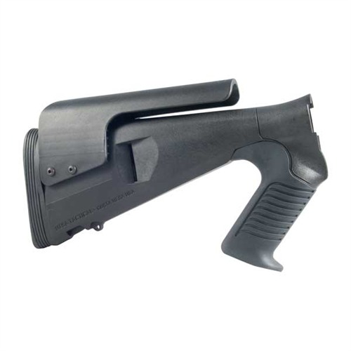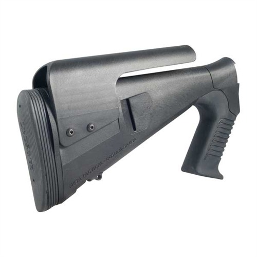 The URBINO TACTICAL SHOTGUN BUTTSTOCK by MESA TACTICAL PRODUCTS is designed to enhance your comfort and maneuverability, especially when wearing body armor. This pistol grip stock is made from rugged, fiberglass-reinforced nylon polymer, featuring a short 12½" (31.7cm) length of pull that allows for easy shouldering and movement.