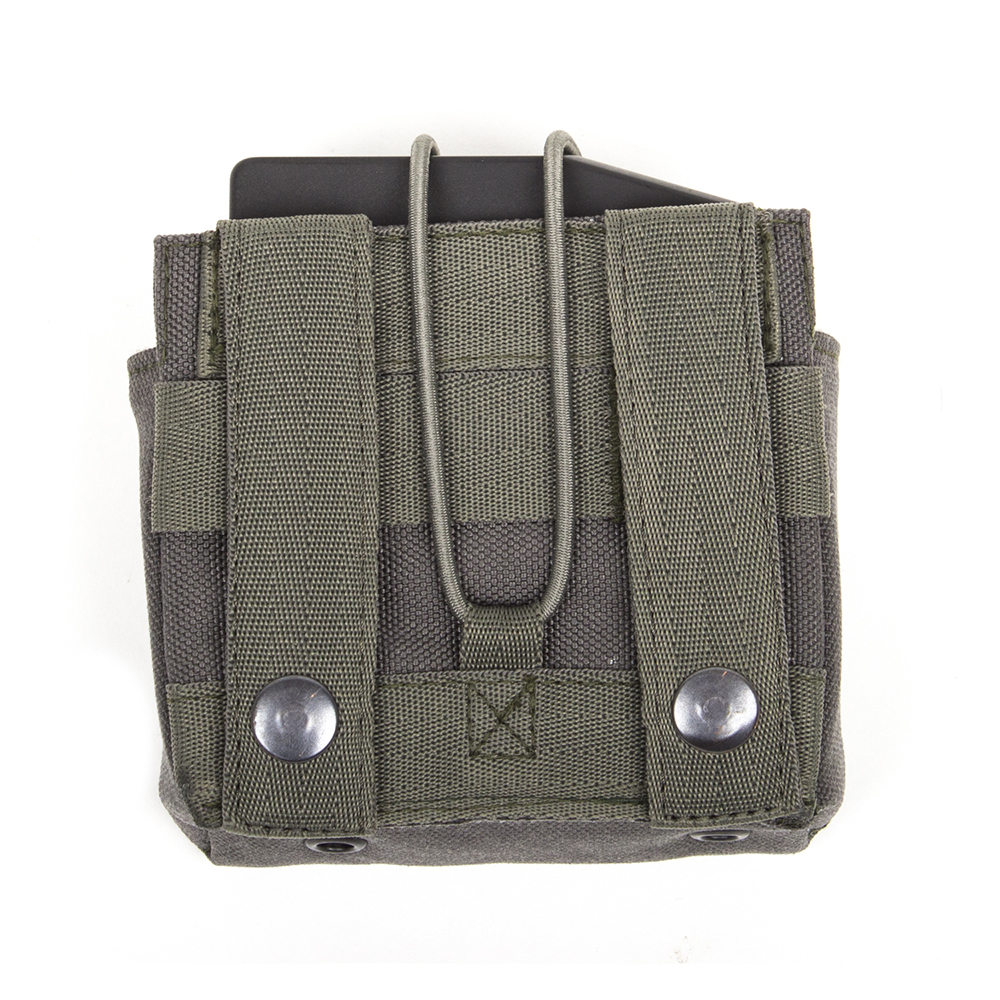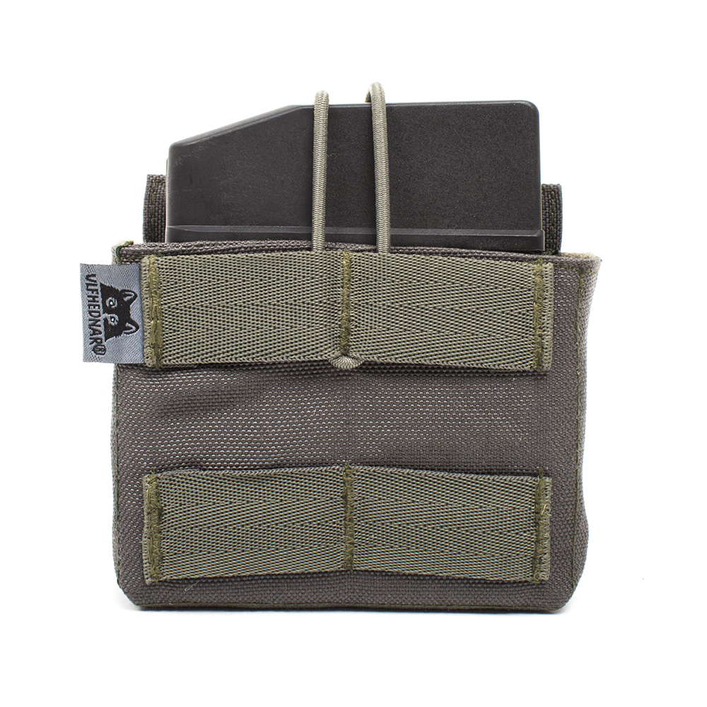 0745114707321 Unviersal magazine pocket from Ulfhednar in which even big AICS magazines can fit. Thanks to the velcro pads and the bungee loop, the pocket can be adjusted to many magazine sizes. It is made out of durable Cordura and has got molle loop on the backside. Up to two long rifle magazines can be stowed into the pocket. This magazine pocket is equipped with the molle standard for fastening. Onto Lasercut belts and vests, which differ from molle, it ma can't be fastened.Discontinued
