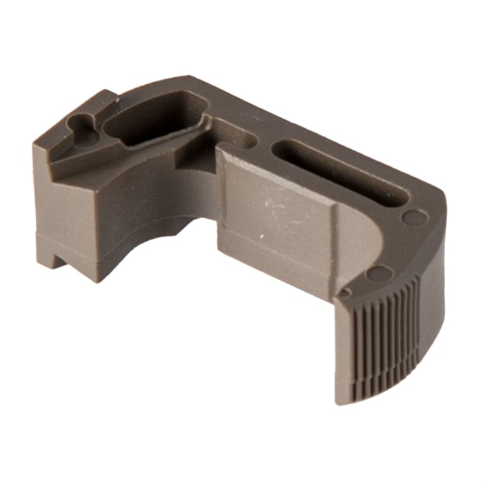- The extended mag release is contoured for easy identification by touch and is ambidextrous, preventing unintentional activation.