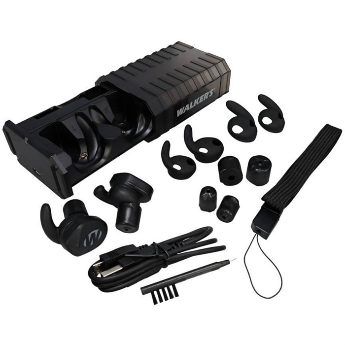 888151099070 WALKER’S RESTRICTOR EAR BUDS W/BLUETOOTH Walker’s Restrictor BT Earbuds combine an impressive 24 dB NRR (Noise Reduction Rating) to shield your hearing from gunshots and other loud noises, while integrating Bluetooth® 5.0 for seamless connectivity through the Walker’s Link app. With the app, users can independently control each earbud and switch between four advanced sound modes. Sound Activated Compression technology delivers crystal-clear digital hearing enhancement without compromising wearers’ safety. They feature the Sure-Lock™ fin and foam tip system and ergonomically placed buttons that are both easy to access and sleek in appearance. Rechargeable using the included micro-USB cable. Stay protected and connected with our Restrictor BT Earbuds—the next evolution in sound enhancement and hearing protection technology. Designed for shooters, hunters and other outdoor enthusiasts, these premium earbuds combine an impressive 24 dB NRR (Noise Reduction Rating) to shield your hearing from gunshots and other loud noises, while integrating Bluetooth® 5.0 for seamless connectivity through the Walker’s Link app. With the app, users can independently control each earbud’s volume, activate sleep modes, monitor battery life, and switch between four advanced sound modes—Universal, High Frequency, Power Boost, and Clear Voice—for an experience tailored to their environment at any given moment. This ensures wearers are prepared for shooting and other excessively loud scenarios by arming them with SAC (Sound Activated Compression) technology, which delivers crystal-clear digital hearing enhancement without compromising wearers’ safety. Plus, everything about the appearance and functionality of the buds is streamlined and intuitive, from the patented Sure-Lock™ fin and foam tip system to the ergonomically placed buttons that are both easy to access and sleek in their appearance. And at the end of a long day at the range, the duo’s built-in lithium batteries, which provide up to 14 hours’ worth of runtime, are easily recharged using the included micro-USB cable, so you always have appropriate hearing coverage juiced up and ready. FEATURES: Earbud-style sound management technology protects and amplifies sounds based on the situation Bluetooth 5.0 connectivity delivers high-quality audio to connected mobile devices via the Walker’s Link app for iOS and Android Four frequency modes, including Universal, Clear Voice, High Frequency, and Power Boost Easy operation via Walker’s Link app through your mobile device or smartwatch Dynamic speakers deliver enhanced audio outputDelivery time approx. 7-14 days.