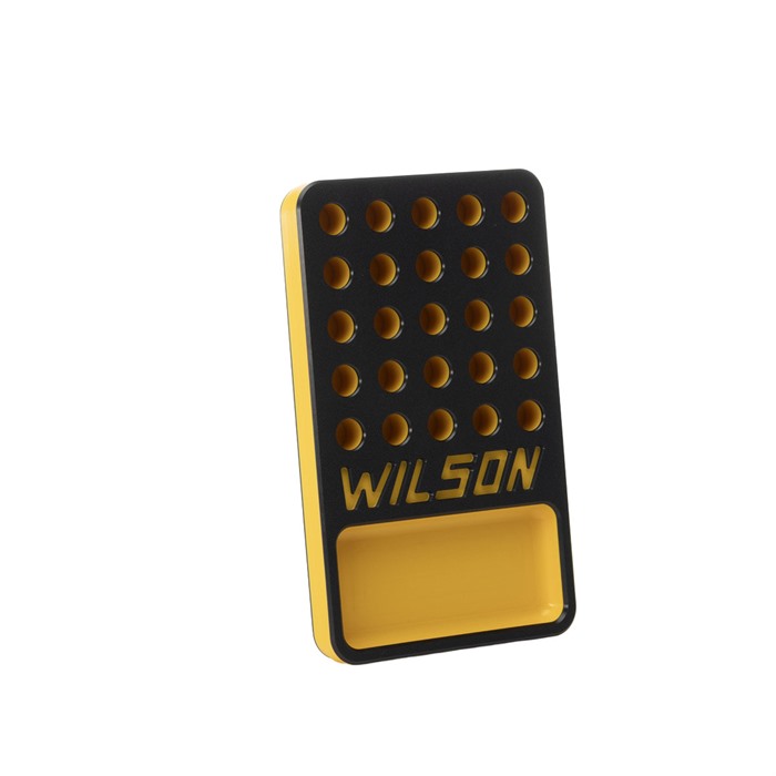 850067827580 L.E. WILSON, INC. RELOADING TRAYS WITH CUP The L.E. Wilson 25-Round Reloading Tray (.473 case head) streamlines brass handling for the .308 Win family and other cartridges sharing the .473″ bolt face. Precision-machined from durable HDPE plastic, it pairs a low-profile 25-hole layout with a convenient bullet/primer cup for efficient sorting, charging, and inspection. The black/yellow finish is tough and easy to spot on the bench, and the spacing gives you room to grab cases without tipping. Proudly made in the USA. FEATURES 25-Round Capacity – Holds up to 25 cases securely for organized case prep. Integrated Bullet/Primer Cup – Convenient storage for bullets or primers during reloading. Precision-Machined HDPE Plastic – Durable, solvent-resistant material that won’t corrode. Low-Profile Design – Provides stability and easy access to cases without tipping. Black/Yellow Color Scheme – High-visibility finish for quick identification on the bench. Caliber-Specific Hole Sizes – Available in multiple head diameters (.380, .440, .473, .506, .533) to fit common cartridge families.Delivery time approx. 7-14 days.
