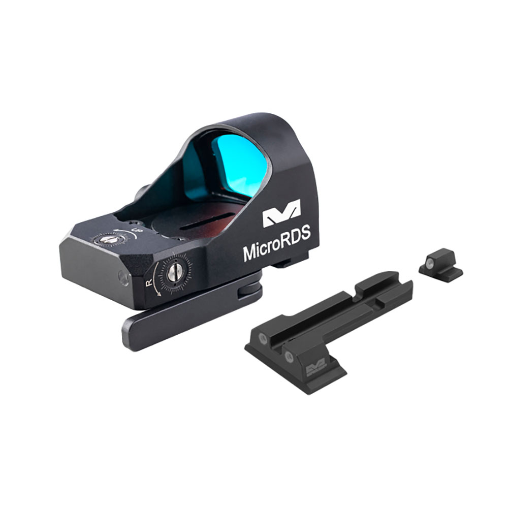 The Mepro microRDS brings the rapid target acquisition of a full-size red dot rifle optic to a compact pistol sight. Featuring a patented quick-detach (QD) adaptor kit, it easily mounts using the pistol’s existing rear sight dovetail slot; no drilling, tapping or need for a gunsmith.